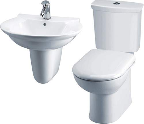Otley 4 piece bathroom suite with toilet, cistern, seat, 600mm wide basin and semi pedestal.