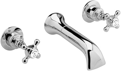 Topaz 3 tap hole wall mounted bath mixer tap.