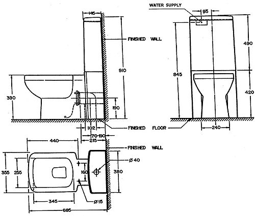 - Cistern and fittings.