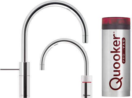 Quooker Nordic Round Twintaps. Instant filtered boiling hot water kitchen tap with separate hot and cold mixer tap. Polished chrome finish. (PRO11-VAQ).