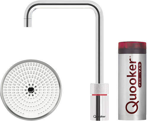 Quooker Nordic Square instant filtered boiling hot water kitchen tap with drip tray (font waste). Polished chrome finish. (PRO7-VAQ).