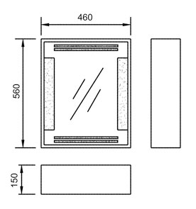Evesham bathroom cabinet with strip lights. 460x560mm.