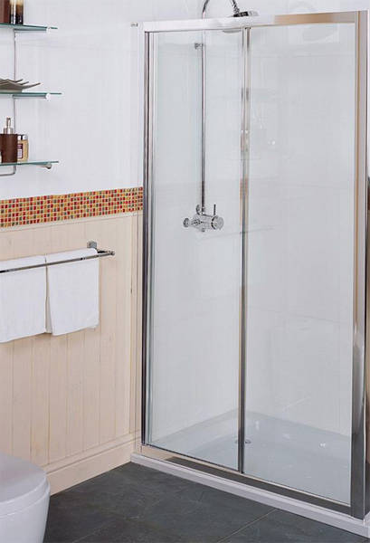 Collage sliding 1200mm shower door with silver frame.