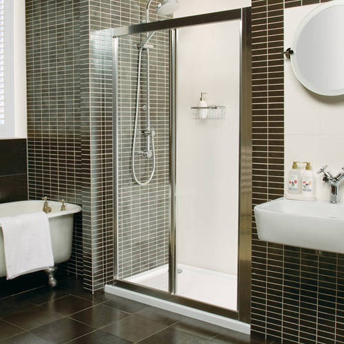 Collage bi-fold 1200mm shower door with silver frame.