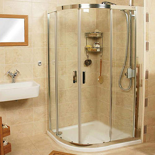Embrace offset quadrant shower enclosure in silver with twin sliding doors (LH).