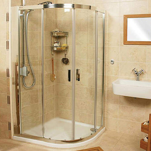 Embrace offset quadrant shower enclosure in silver with twin sliding doors (RH).