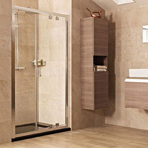 Lumin8 1200mm inswing shower door in silver with 8mm thick glass.