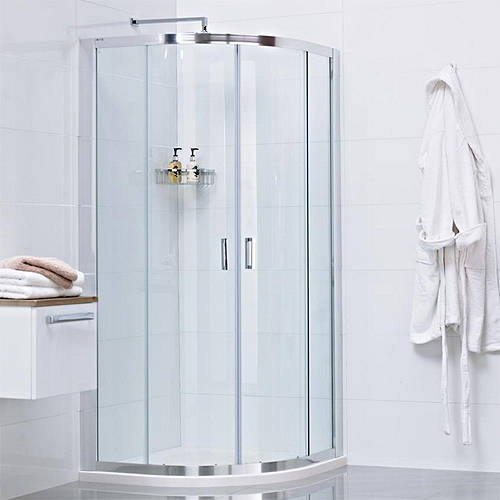 Lumin8 quadrant 900x900mm shower enclosure in silver with two doors and 8mm glass.