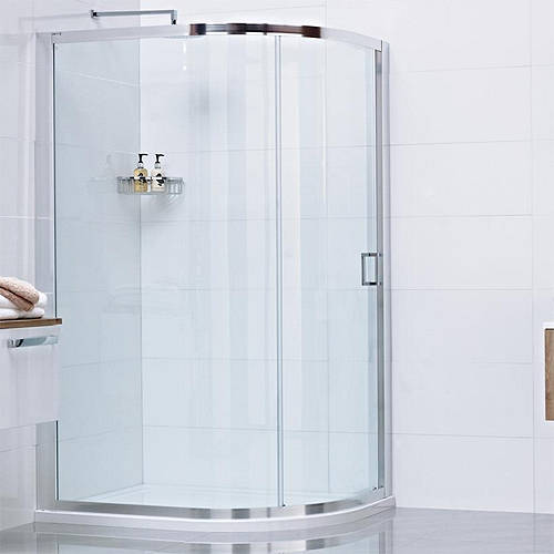 Lumin8 offset quadrant 800x1000mm shower enclosure in silver with one door and 8mm glass.