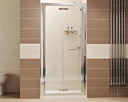 Lumin8 bi-fold shower door in silver with 6mm thick glass (1000mm).
