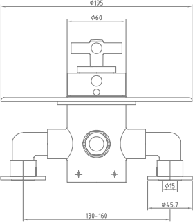 - Shower valve with adjustable pipe centres: 130mm to 160mm.