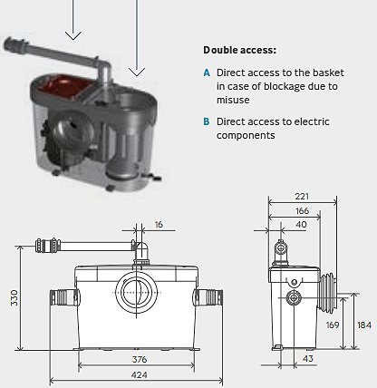 Saniaccess 2 macerator for toilet and basin waste.