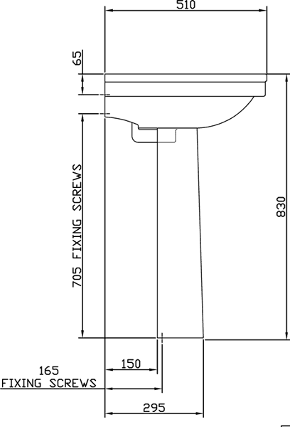 Basin and pedestal with 1 tap hole. Size 655W x 510D x 830H mm. Tap and waste not included.