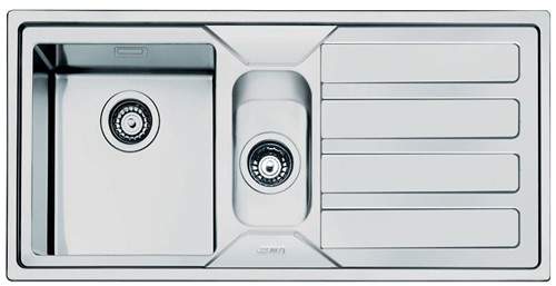 Mira 1.5 bowl, low profile inset kitchen sink in stainless steel with right hand drainer.