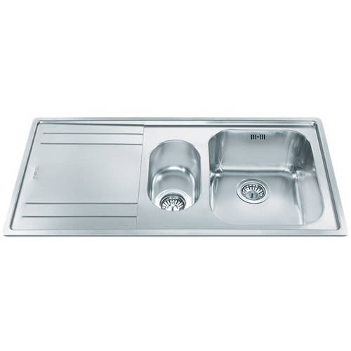 Rigae 1.5 bowl, inset kitchen sink in stainless steel with left hand drainer.