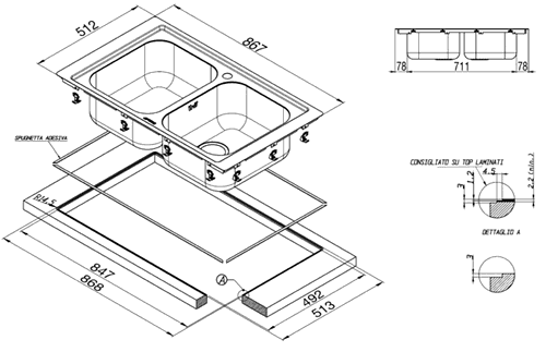 2.0 Bowl stainless steel flush fit inset kitchen sink.