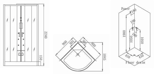 - Shower tray: Height adjustable nylon feet, built in waste and trap. Constructed from strong 12mm resin gel coated fibreglass with stainless steel subframe.