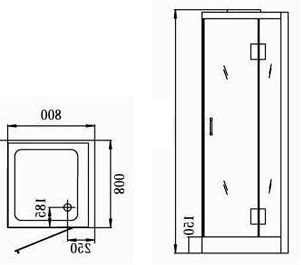 Square steam shower enclosure in aluminium with 8mm thick glass, black glass back panel, shower tray, waterproof oak floor and removable oak seat. Right handed. Size 800x800mm.