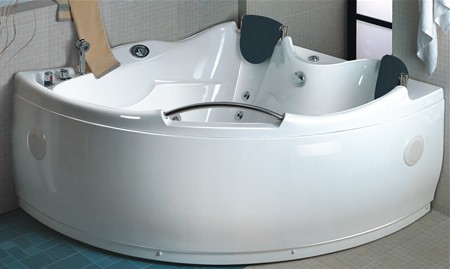 Whirlpool bath for two people with thermostatic bath mixer. Size 1510x1510mm. Depth 690mm. Left handed version.