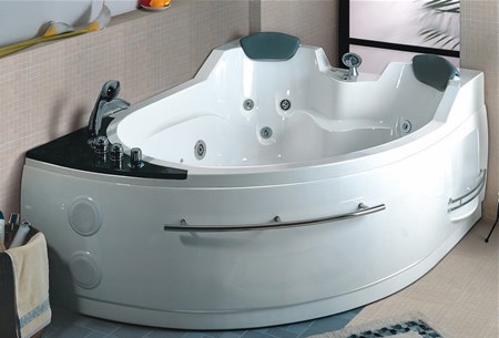 Whirlpool bath for 2 persons with thermostatic bath mixer. Size 1695x1330mm. Depth 715mm. Left handed version.