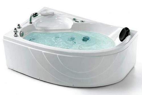 Corner whirlpool bath with bath panel. Size 1500x1000mm, left handed.