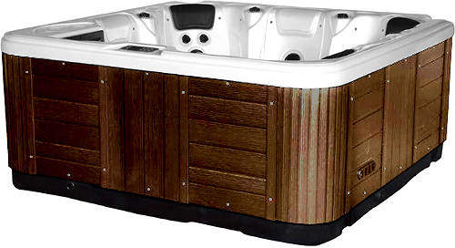 Hydra 6 person Hot Tub in silver white marble with chocolate cabinet and brown cover. Size: 2000x2000x850mm.