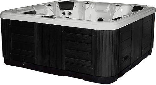 Hydra 6 person Hot Tub in gypsum with black cabinet and grey cover. Size: 2000x2000x850mm.