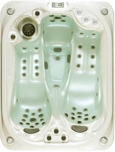 Mercury 3 person Hot Tub in white pearlescent with black cabinet and gray cover. Size: 2180x1680x940mm.