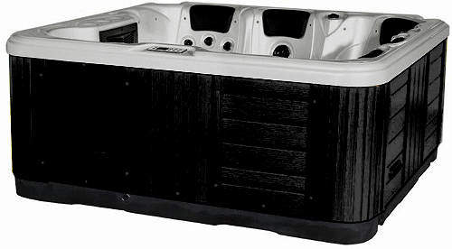 Ocean 5 person Hot Tub in gypsum with black cabinet and brown cover. Size: 2000x2000x850mm.