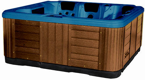 Ocean 5 person Hot Tub in cloud blue with chocolate cabinet and grey cover. Size: 2000x2000x850mm.