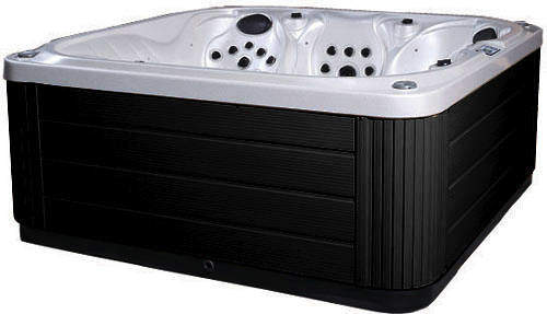Venus 6 person Hot Tub in white with black cabinet and gray cover. Size: 2300x2300x995mm.