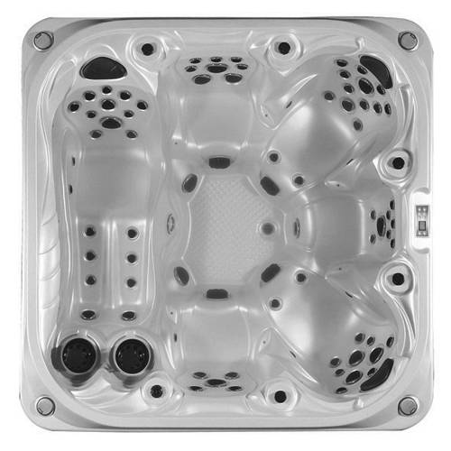 Venus 6 person Hot Tub in silver white marble with chocolate cabinet and gray cover. Size: 2300x2300x995mm.