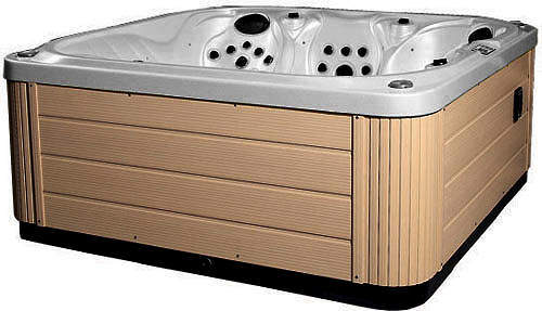 Venus 6 person Hot Tub in gypsum with light yellow cabinet and light yellow cover. Size: 2300x2300x995mm.