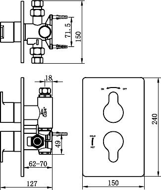 Thermostatic 2 way twin concealed shower valve in chrome with slide rail kit, wall outlet and auto bath filler waste.