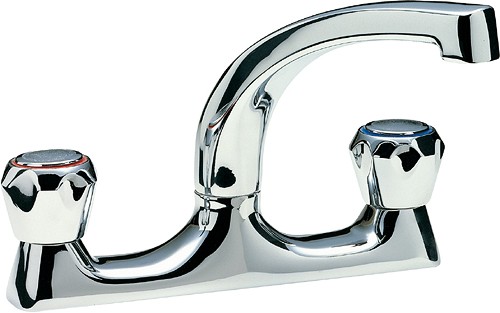 Capri dual flow mixer kitchen tap in chrome with brass italy heads.