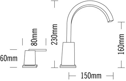 Tre Mercati's Mr Darcy range of designer bathroom taps and showers are constructed from high quality solid brass, have easy to use square lever tap handles and arched spouts.