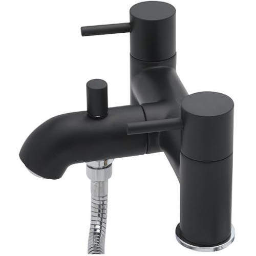 Tre Mercati Milan pillar bath shower mixer tap in matt black finish with shower kit.