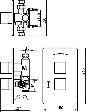 Example image of Tre Mercati Dance Thermostatic Twin Shower Valve Wtih Head & Arm.Technical image of Tre Mercati Dance Thermostatic Twin Shower Valve Wtih Head & Arm.