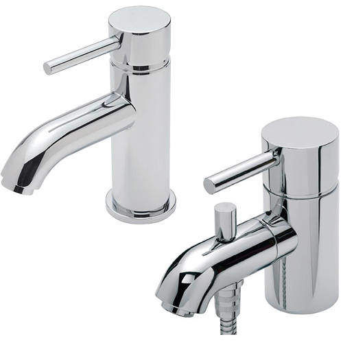Tre Mercati Milan mono basin and mono bath shower mixer tap pack in chrome finish with shower kit.