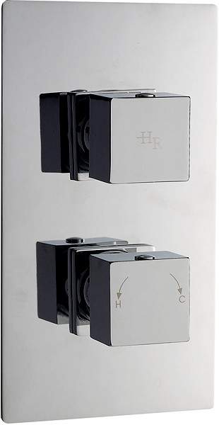 Twin concealed thermostatic shower valve in chrome.