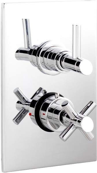 Twin concealed 3/4" thermostatic shower valve.
