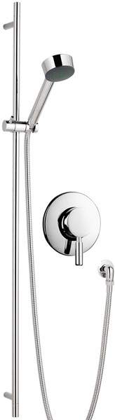 Manual concealed single lever shower valve in chrome with kew slide rail kit, shower handset and hose.