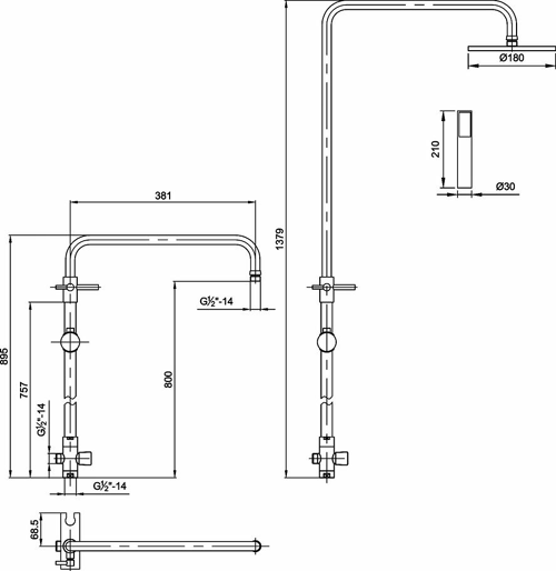 Pro I rigid riser kit in chrome with diverter and round shower head.