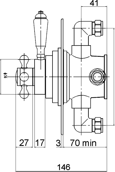 - Traditional round shower valve.