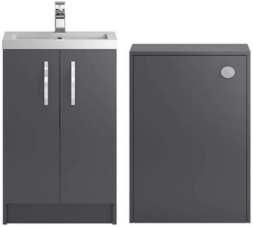 Hudson Reed Apollo bathroom furniture pack in gloss grey. 500mm floor standing vanity unit with basin and 600mm WC unit.