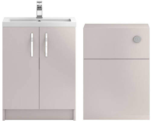 Hudson Reed Apollo bathroom furniture pack in gloss cashmere. 600mm floor standing vanity unit with basin and 600mm WC unit.