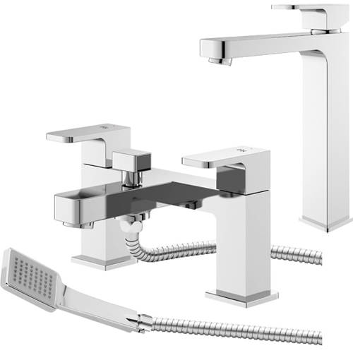 Hudson Reed Astra tall basin and bath shower mixer tap pack in chrome with lever handles.