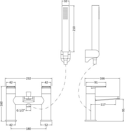 Nuie Bailey bath shower mixer tap in chrome with kit.