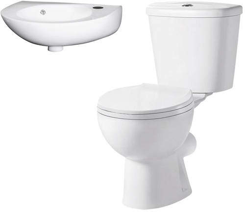 Brisbane toilet and 350mm curved fronted wall hung basin pack.
