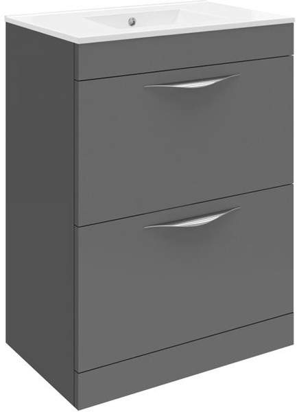 600mm Vanity unit in gloss grey with drawers, chrome handle and 120 minimalist basin.